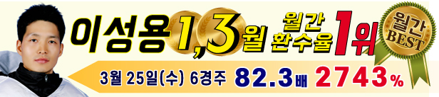 | 이성용 | 15경주 1-2(70%) 삼1-2-6(30%) [.. | 169% |