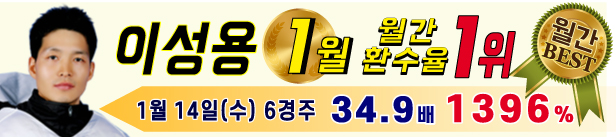 | 이경석 | 15경주 1-2(40%)노림2-6-4,3(60%).. | 224% |